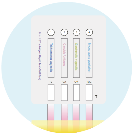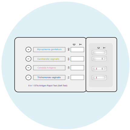 Mājas lietošanai paredzētais 8-vienā seksuāli transmisīvo slimību tests piedāvā visaptverošu un diskrētu skrīningu attiecībā uz astoņām izplatītākajām infekcijām: hlamīdiju, gonoreju, trihomonozi, mikoplazmu (MH), kandidozi, ureaplazmu, mikoplazmu (MG) un gardnerellu. Tests ir paredzēts gan vīriešiem, gan sievietēm un balstās uz urīna paraugu. Tas sniedz uzticamu rezultātu tikai 15 minūtēs, ļaujot ātri un privāti novērtēt savu seksuālo veselību, neizejot no mājām.